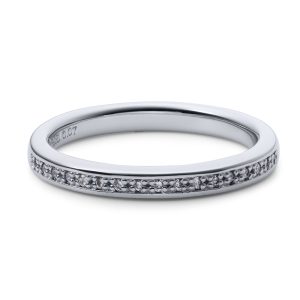 全体の半分に及びダイヤモンドが留まっているので、指にはめた時、どの角度から見ても輝きを感じることができます。